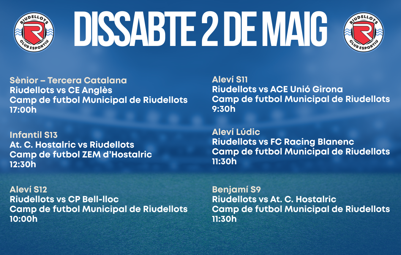 Un cap de setmana amb molts partits a casa per gaudir del futbol i animar els nostres equips. Us esperem al camp per continuar fent gran el Riudellots entre tots. 💙⚽