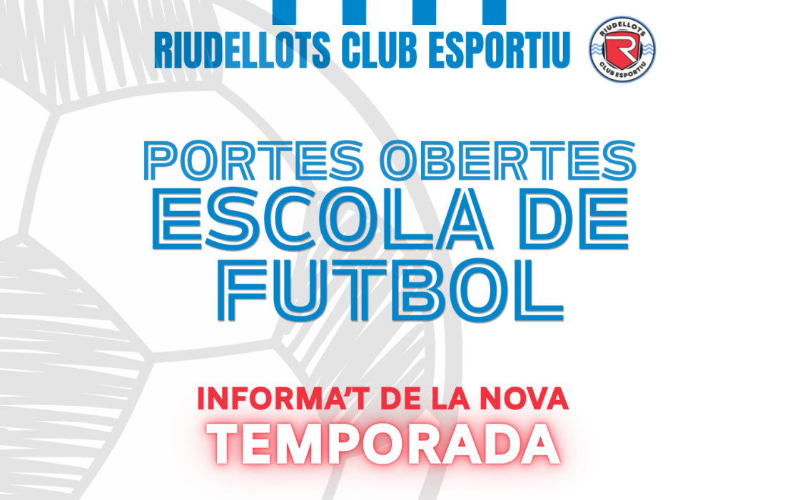 El Riudellots Club Esportiu, amb el suport de l’Ajuntament de Riudellots de la Selva, organitza, un any més, les jornades de portes obertes de l’Escola de Futbol Riudellots, una oportunitat ideal per conèixer de prop el funcionament del club i descobrir tot el que s’està preparant per a la nova temporada 2026-2027.